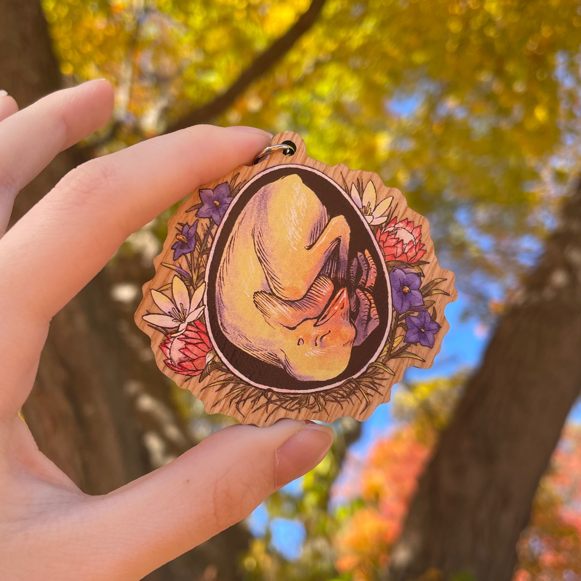 Double-sided 2.5" synthetic wooden keychain. Also available as a sticker!